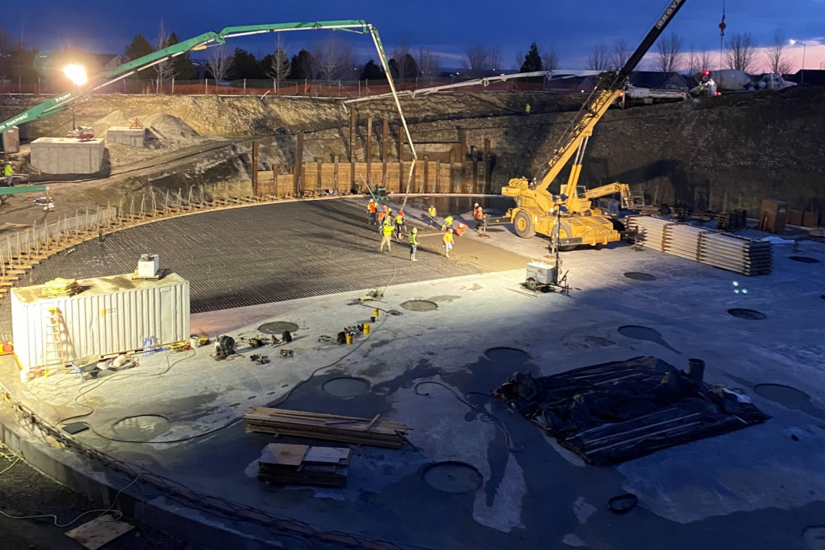This ten-month project is currently under construction for the City of Kennewick. As a tank subcontractor we are constructing a new 6MG AWWA D110 Type I prestressed concrete reservoir to replace the existing demolished 10MG reservoir. Reservoir construction includes a 194’ diameter 24” (2’-0”) thick slab foundation, 31’-6” tall concrete walls, 52 columns and 10” thick roof slab. The reservoir will be completed as scheduled in August 2021.