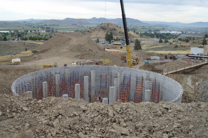 Ward-Henshaw conquered the tough rock conditions of southeastern Oregon at this remote jobsite for the Steward Lennox 1.2MG prestressed-concrete, subterranean reservoir. Scope involved the excavation of 32,000 total CY including 25,000 CY of rock. that was crushed onsite and then balanced and placed. This was a fully buried reservoir with our work including final grading and the restoration of the site within the project boundaries.