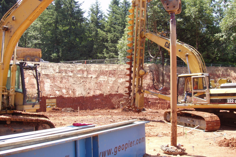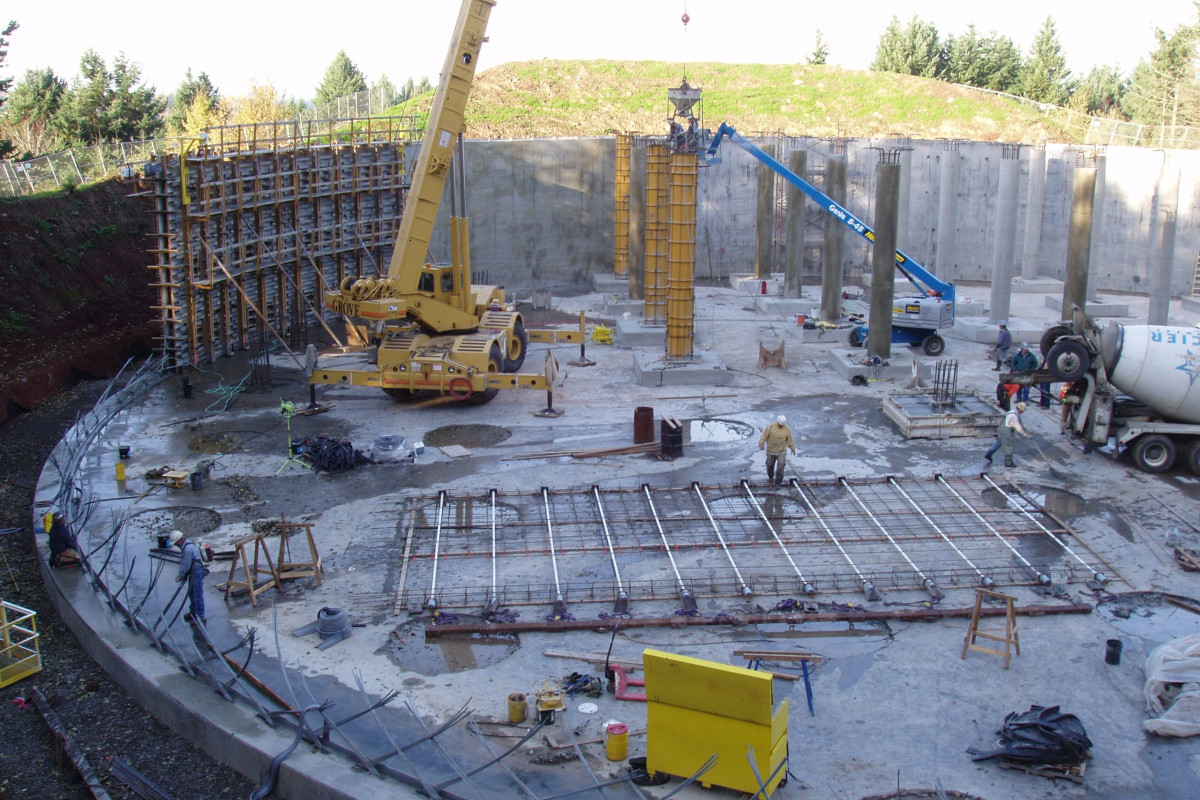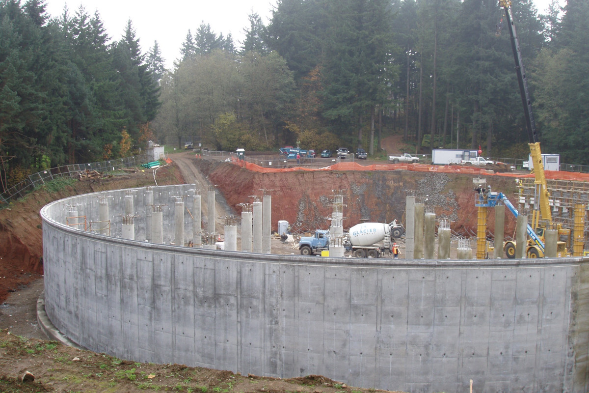This CM/GC project was fast tracked and within three weeks of pre-construction design, value engineering, and constructability reviews, the construction phase GMP agreement was finalized and approved at 75% design. The project involved a buried 4MG prestressed concrete reservoir located on Scouters Mountain. It entailed complex excavation, stock piling, and backfill including gravel surfacing, storm drainage, detention pond, and associated electrical work. Original design was an 18” concrete mat slab for soil stabilization, however, soon after the GMP, the Olympics in China caused exponential rising costs for rebar. Design team explored many alternatives and finally discovered geopiers would meet design and ultimately brought the project under the original GMP.