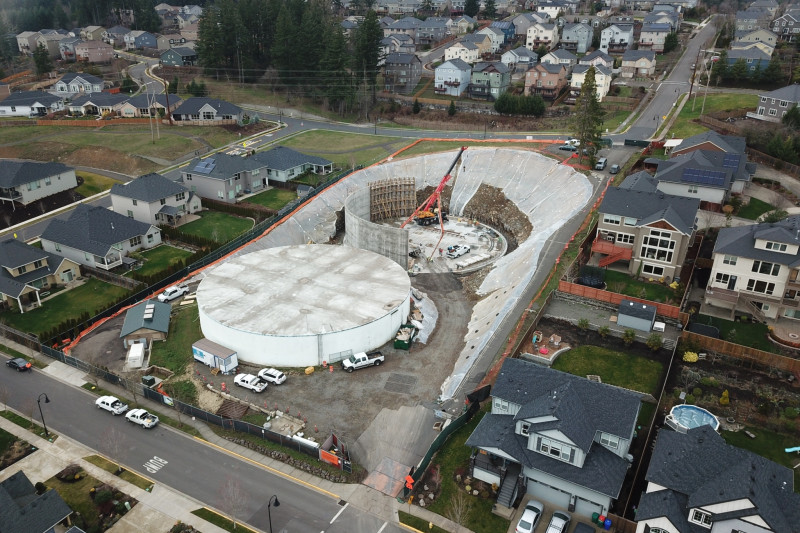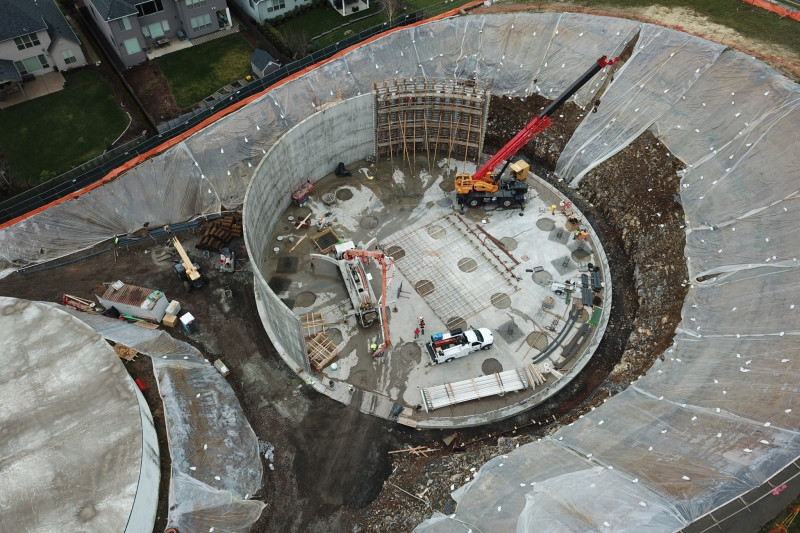Ward-Henshaw was selected as the contractor for this project thru a competitive and qualifications-based alternative project delivery procurement process. Our constructability review prior to start of construction allowed us to assist in a design change for the wall footing foundation which saved time on the schedule, provided cost savings, and reduced a potential leak joint for the Owner. Additionally, our team proposed alternative routes for yard piping that improved the project integrity and allowed for greater safety during construction. Scope of Ward-Henshaw’s work included construction of a new 3.0MG prestressed concrete reservoir, involving mass excavation, soil nailing stabilization, offsite stockpiling, and extensive coordination with nearby residents. Activities near an existing reservoir and pump station that needed to remain in service presented logistical challenges early that became a beneficiary of the collaborative team environment.
