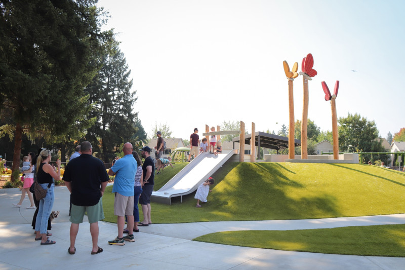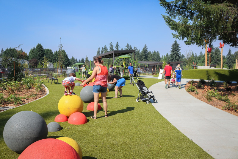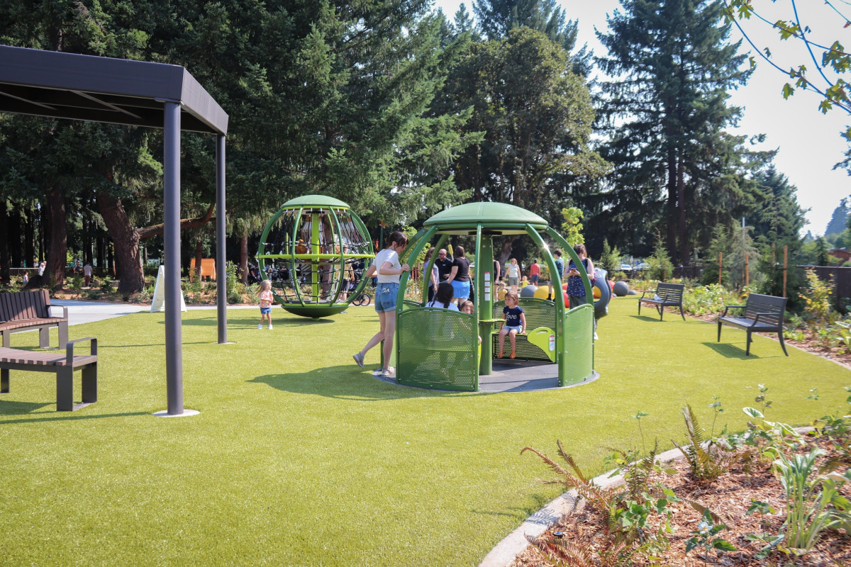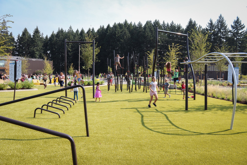 This project for the City of Hillsboro includes the creation of a new 11-acre park on the west side of 53rd Avenue, which is designed and built for people of all ages, abilities and backgrounds. Scope includes natural play features, a sand and water play area, specialized runnel paving, naturalistic plantings, flexible lawns, pathways and trails, a fitness area, a place space for pop-up activities, a games area, shade structures, picnic pavilion, restrooms, parking and open spaces filled with climate-adapting landscaping and native restoration plants.