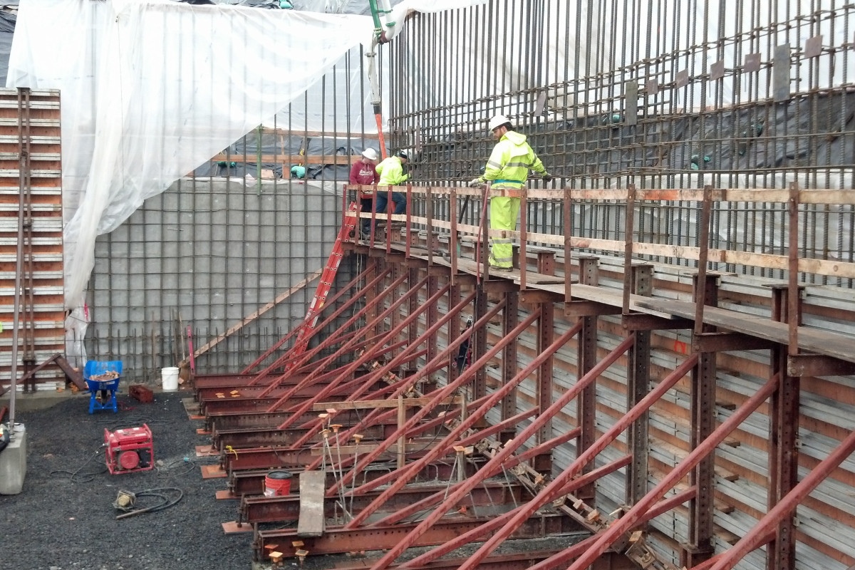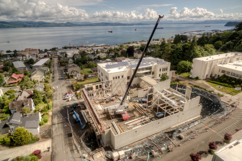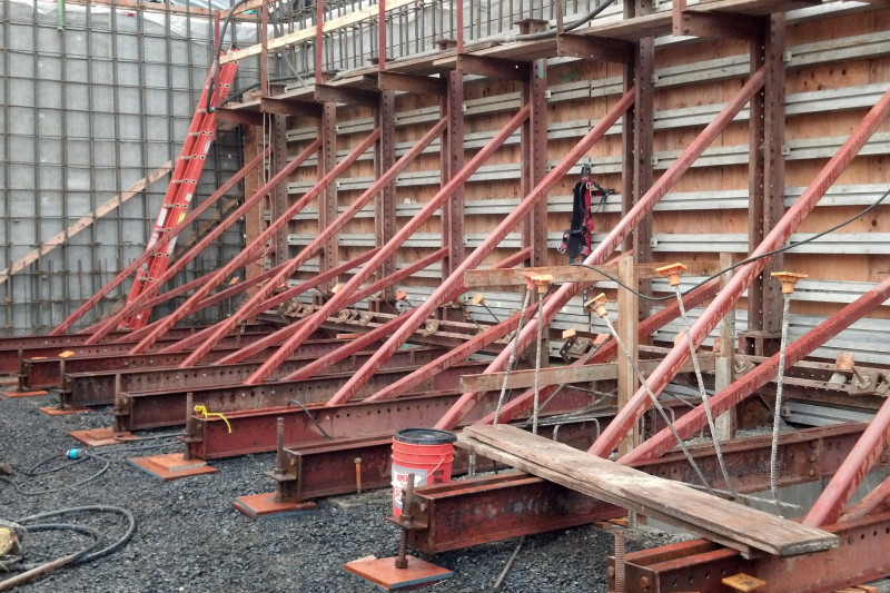 Winner of the DJC TopProjects 2018 High Performance Building Award, the reconstruction of Clatsop Community College's historic Patriot Hall involved selective demolition of the circa 1920's concrete and wood structure, preservation of the existing foundation and building retaining walls, and construction of a new concrete and steel building. The new building provides the college and community with a gymnasium with seating for 500, an indoor running track and athletic workout rooms, classrooms, and administrative spaces for staff. Ward-Henshaw's scope of work included single-sided concrete forms against a shoring system.