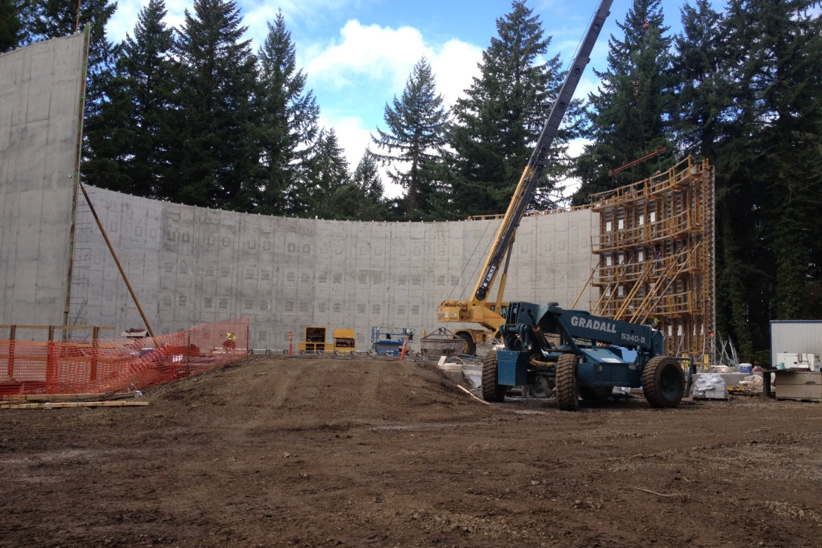 The $7.5 million project for the Lake Oswego-Tigard Water Partnership included construction of a new 3.5MG prestressed concrete dome roof drinking water reservoir with new inlet, outlet piping and control valves and mixing manifold. Extensive sitework involved new cast-in-place vaults and precast vaults. Careful logistical coordination by Ward-Henshaw resulted in a smooth connection to the existing piping configurations. Modifications to the existing reservoir included boring new inlet piping for the new mixing manifold and new control valves. New stormwater drainage piping, stormwater detention basin, and overflow detention basin were carefully configured on the challenging steep and spatially tight site.